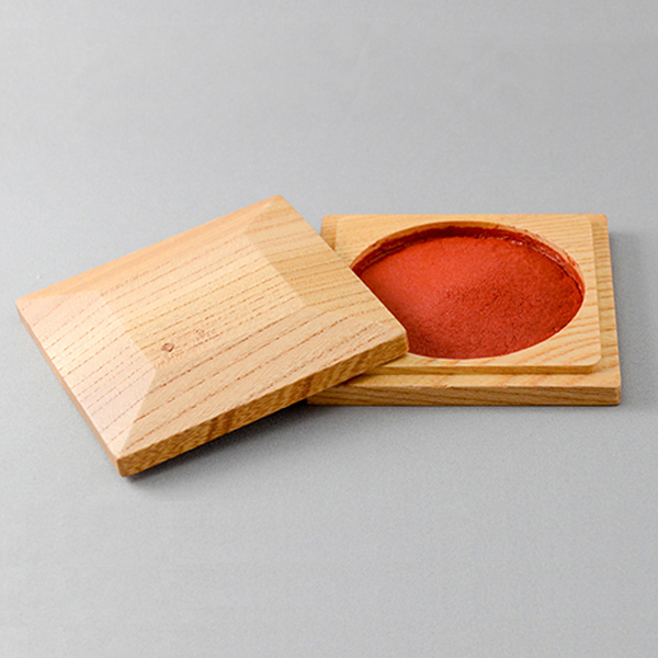 高級朱肉の代名詞「日光印」と、スタイリッシュな国産材木製品を製造・販売するフロンティアジャパン株式会社のブランド「JAPAN BRAND」とコラボレーションし、 日光印×JAPAN BRANDというダブルネームの国産のケヤキを贅沢に使った一品。