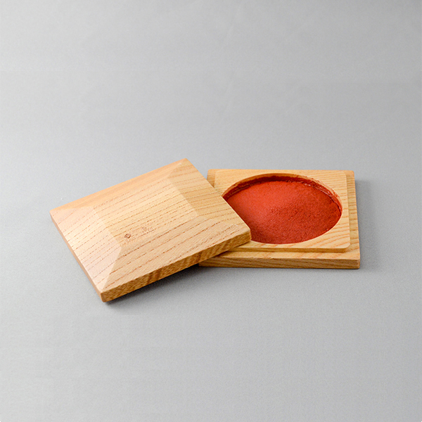 高級朱肉の代名詞「日光印」と、スタイリッシュな国産材木製品を製造・販売するフロンティアジャパン株式会社のブランド「JAPAN BRAND」とコラボレーションし、 日光印×JAPAN BRANDというダブルネームの国産のケヤキを贅沢に使った一品。