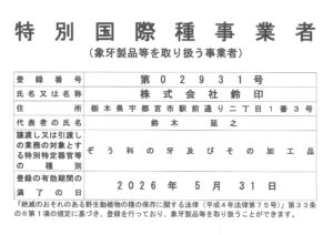 象牙製品に関する各種法令を遵守し、安心してご購入・ご使用いただける体制を整えております。