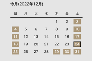 年末年始の営業日程 カレンダーの濃い色がお休みになります。 【お正月休み】 店舗)12月29日(木)〜1月3日(火) WEB)12月29日(木)〜1月5日(木) ※12/28(水)の店舗営業時間は、10:00〜18:00…