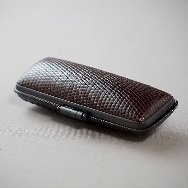 KFトカゲ革ケース・フレーム燻し加工福輪有・牙蓋付