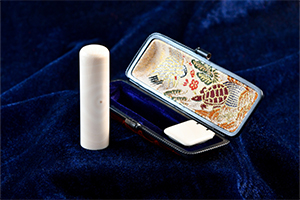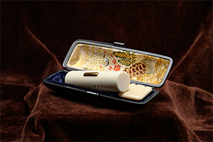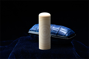 象牙日輪(にちりん) 最高峰の象牙の美しさを最大限に引き出した印材です。 通常象牙の印材は、牙と平行(縦)に取り出していきます。 対して日輪と呼ばれる材料は、芯を中心に垂直(横)に取り出しした贅沢品。 日輪の名前の由来は…