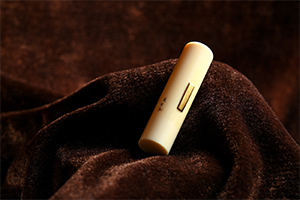 構想から4年。 ようやくこのパッケージが完成しました。 昨日ご紹介した21㎜よりもさらに希少な印材です。 【マスターピース】象牙横目芯持75㎜丈×24㎜丸実印の特徴 横目芯持 通称「日輪」と呼ばれる横目芯持…